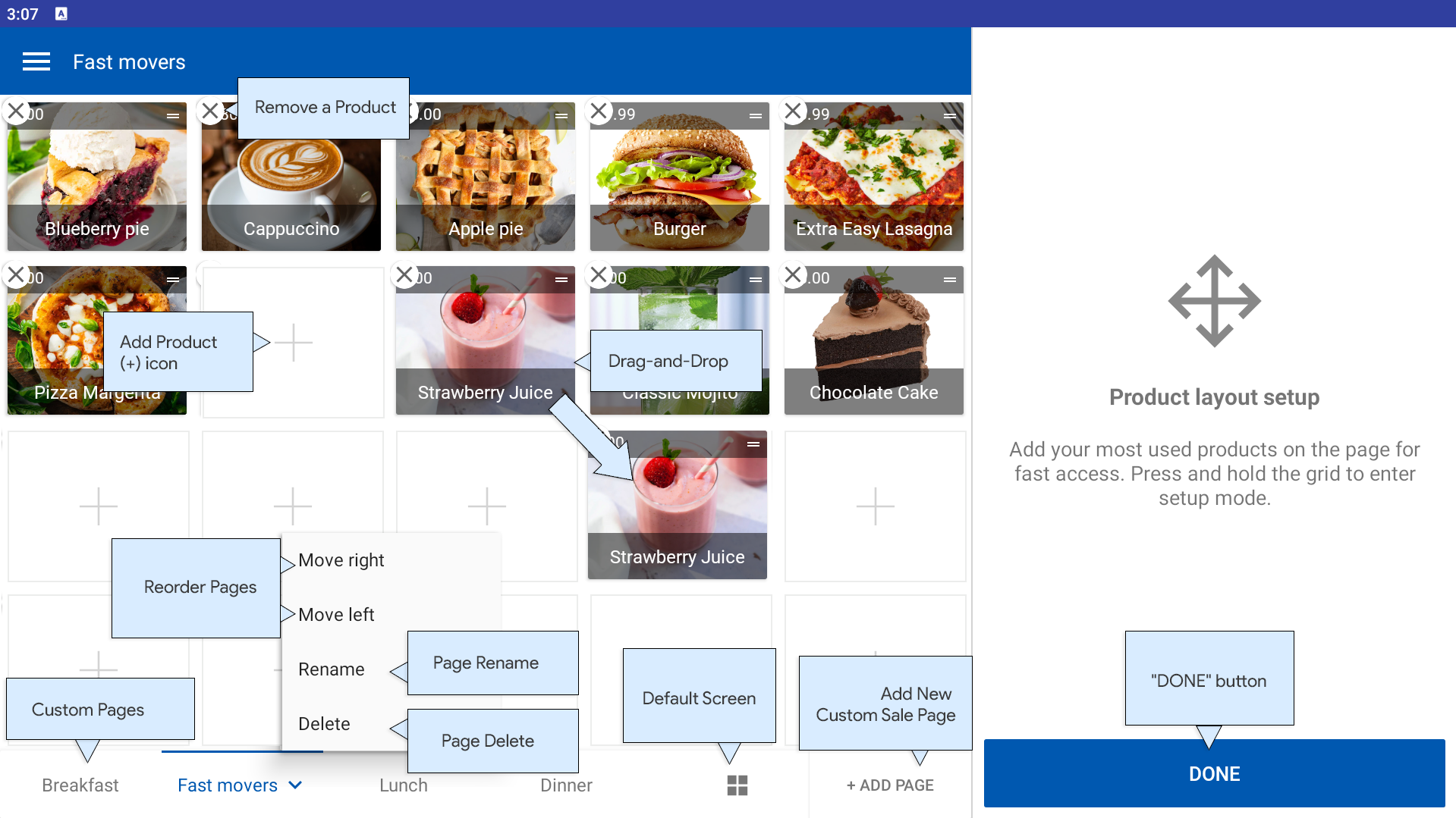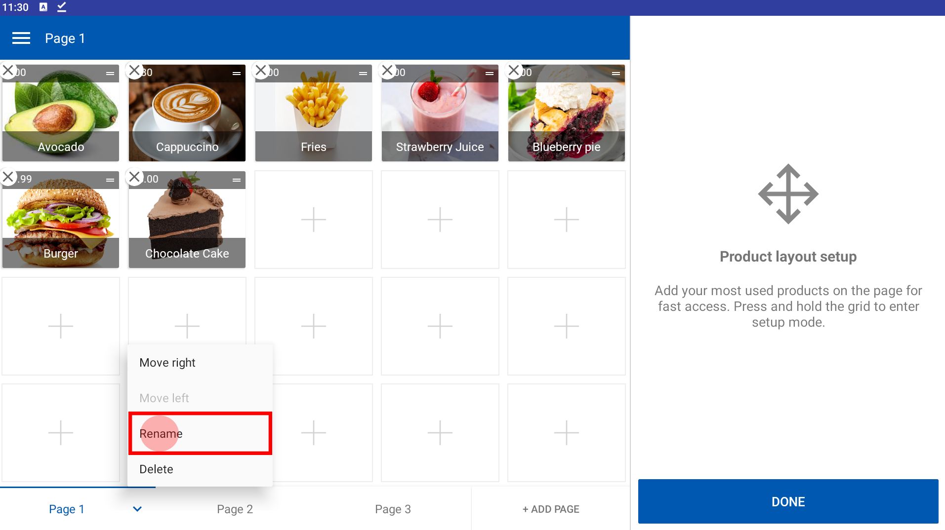 Renaming helps organize pages logically—like “Lunch,” “Beverages,” or “Fast Movers”—for easier navigation.