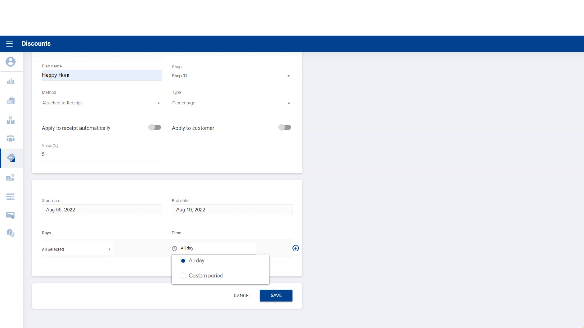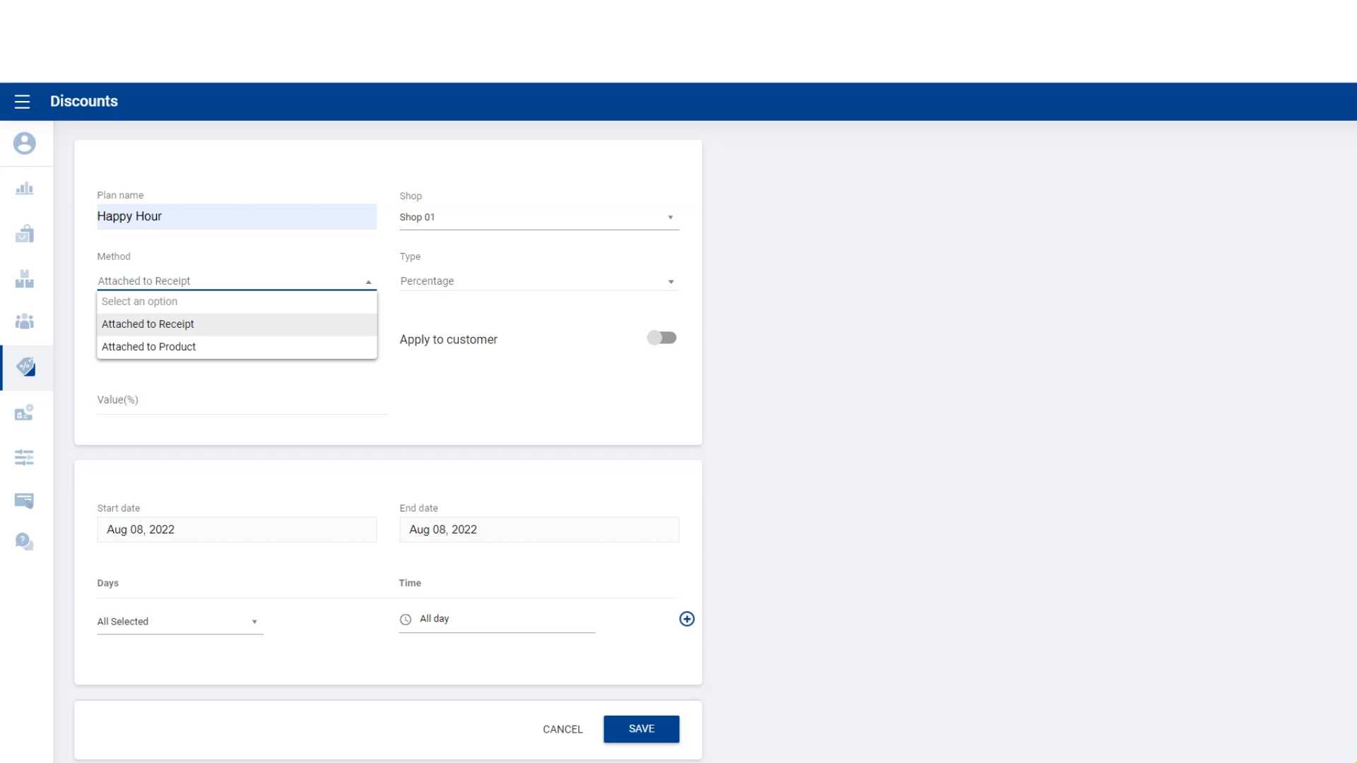As part of the restructuring process, the Product-wise Discount plan options are now accessible within the item customization dialog, while receipt-wise discount plans are conveniently located under a discount icon in the main receipt interface. You have the flexibility to toggle these discounts on or off as needed.