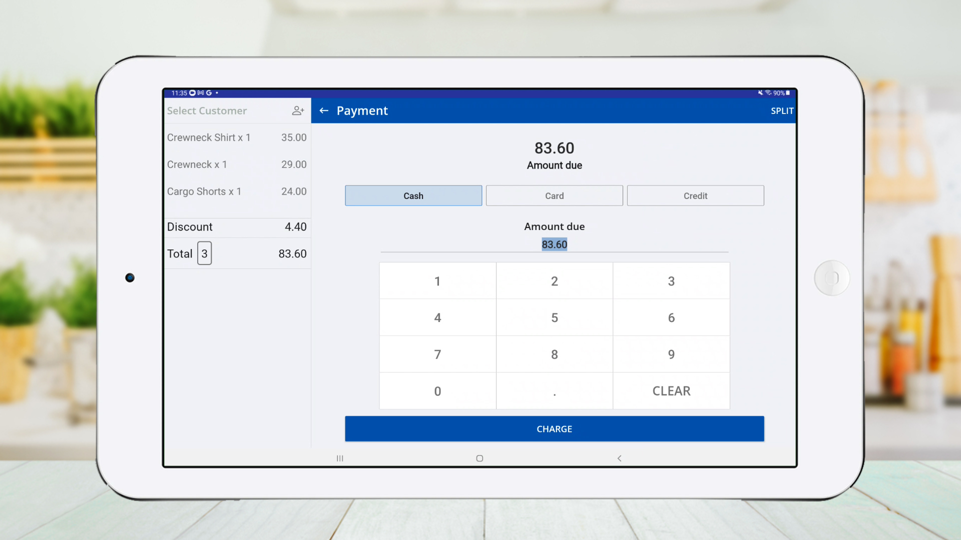 Click 'CHARGE' and you will see the discount has been successfully added to the receipt.