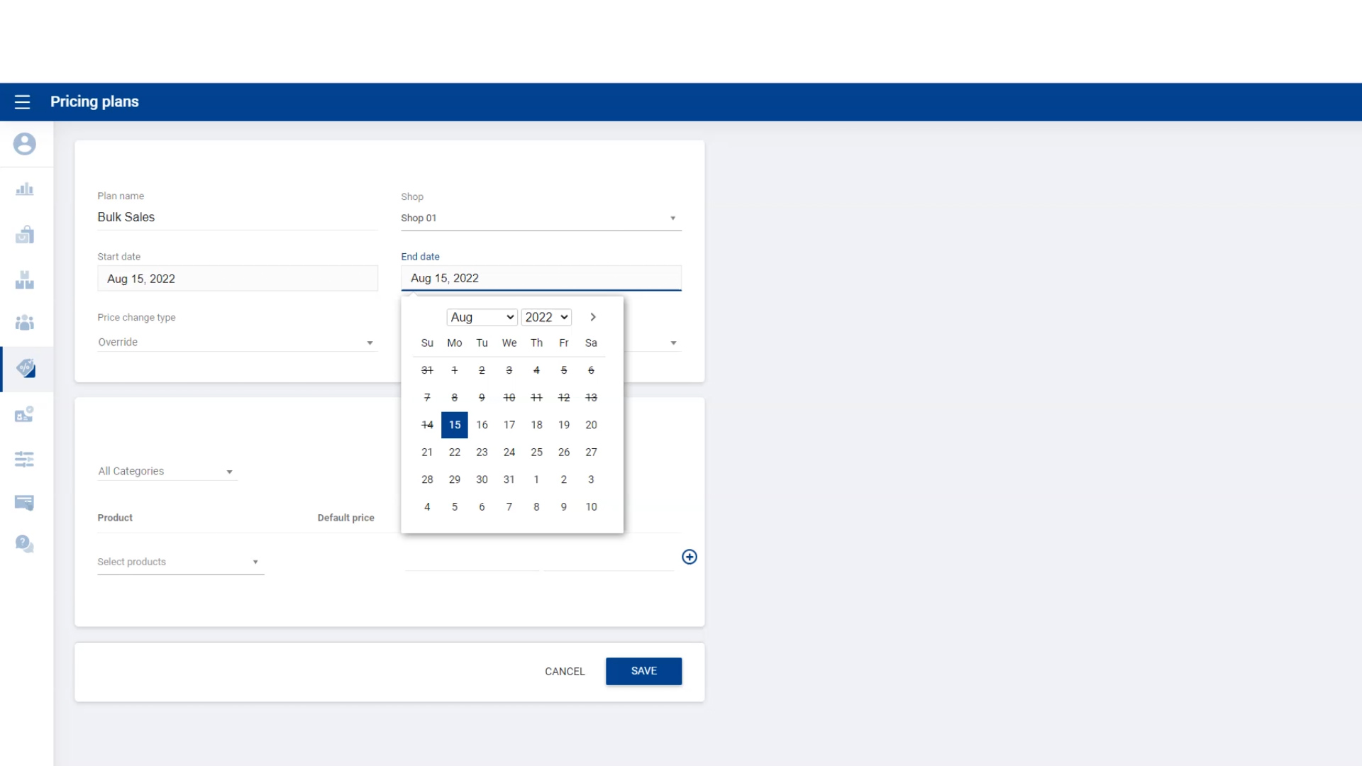 Select “ Reduce” Price change type if you wish to decrease the selling price than regular price