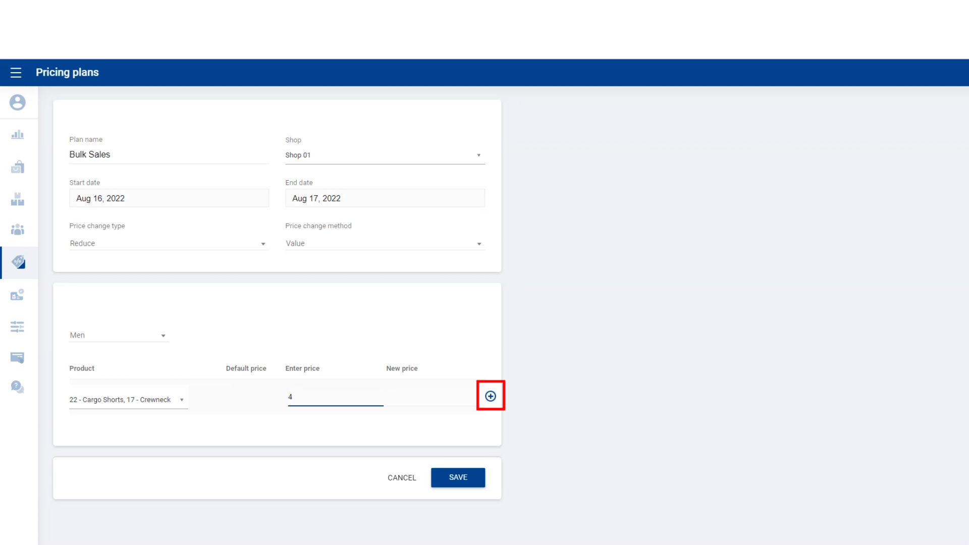 Select “ Add” Price change type if you wish to increase the selling price than regular price