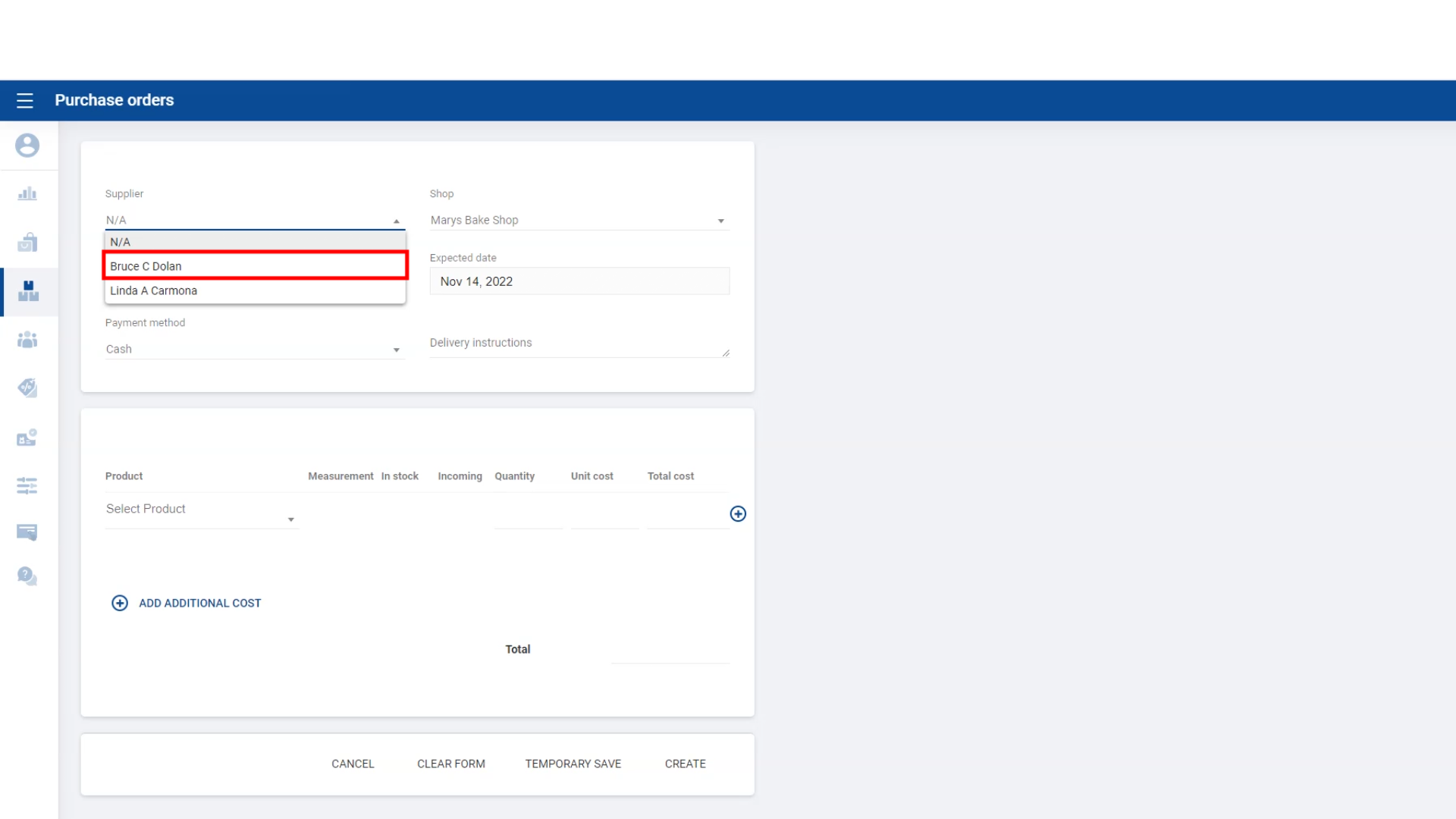 Purchase orders (POs) are documents sent from the buyer, to a supplier with a request for products or services as an order. PO includes the PO Number, products codes and name, quantities and prices.