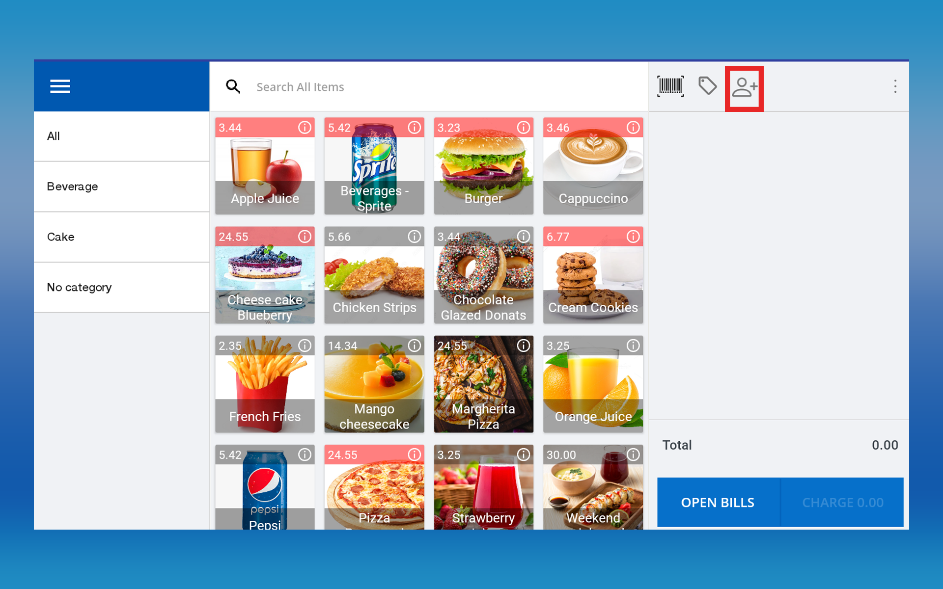 2. POS App main menu > Select “ New Sale ” > Click the “Customer” icon