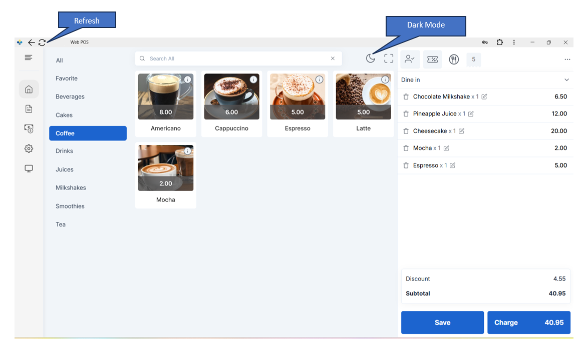 WebPOS will instantly switch to Dark Mode.