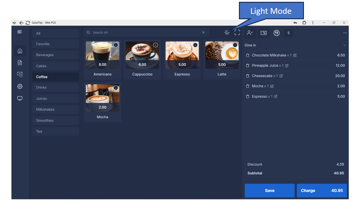 SalesPlay is excited to introduce a refreshed WebPOS user interface, designed to deliver a faster, smoother, and more comfortable experience for your daily business operations. This update includes a modern new look, performance improvements, and the long-awaited Dark Mode feature.